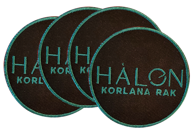 On Hàlon these patches are sewn into t-shirts and uniforms on the upper arms. In our world they can be used as bookmarks, a drink coasters, or be embroidered on a traveling bag or shirt sleeve.